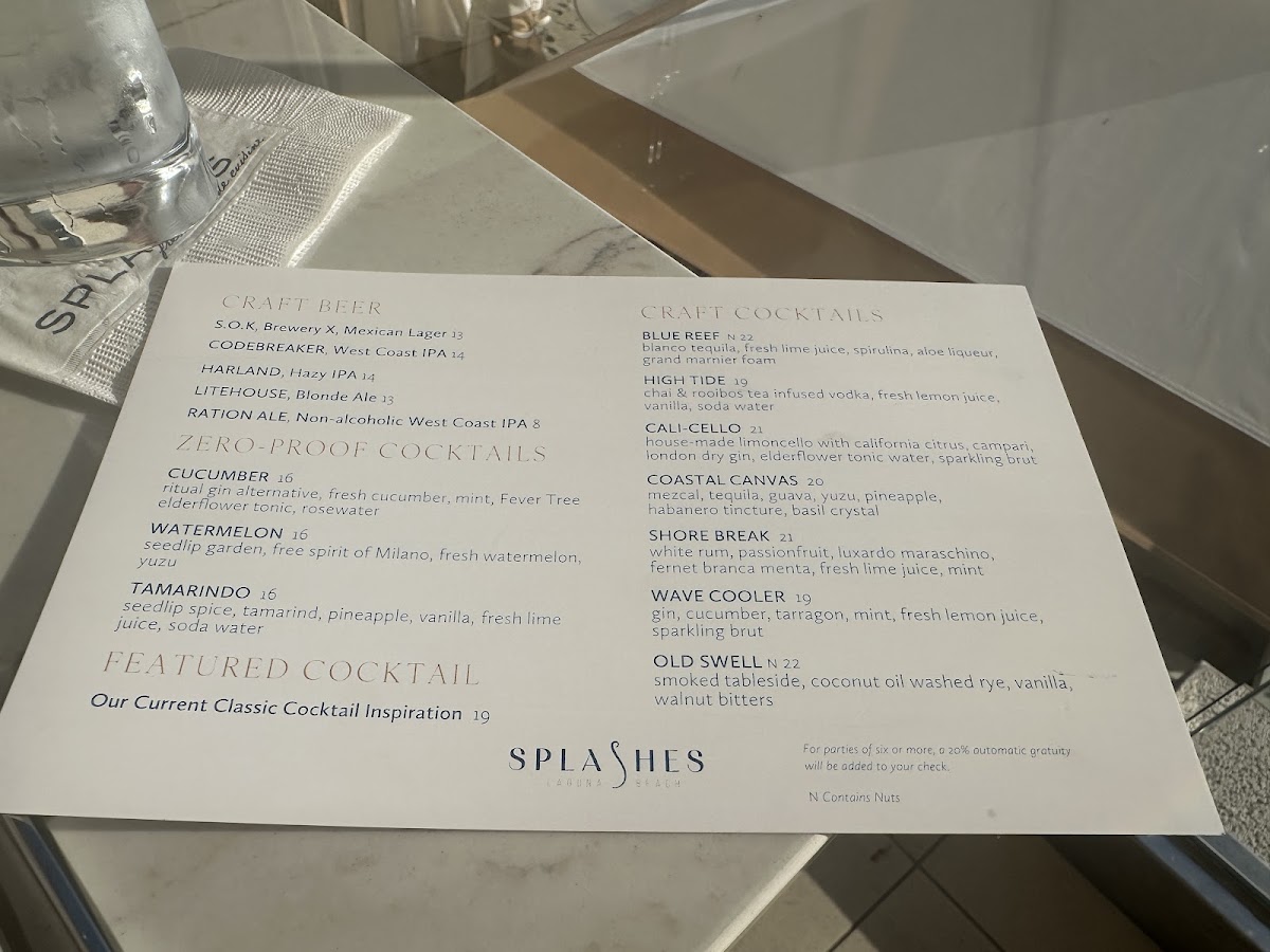 Complementing the food, the cocktail list and fresh juices lend a refreshing balance, making it easy to unwind and savor the coastal atmosphere. Whether dining inside or on the terrace overlooking Laguna Beach, the menu creates a natural extension of the peaceful, laid-back environment.